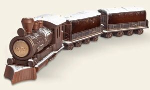 Étienne Leroy, Champion du Monde de pâtisserie et chef pâtissier de la maison Lenôtre, signe cette année Le Train des Merveilles, une création spectaculaire qui invite au voyage. Entièrement façonnée à la main, la locomotive en chocolat, composée d’une cinquantaine de pièces délicates, déploie un décor d’orfèvre où chaque détail doré semble animé par la magie de Noël. Les deux wagons-bûches révèlent une gourmandise intense : croustillant noisette, praliné fondant, biscuit cacao, crémeux chocolat et mousse onctueuse, le tout sublimé par un glaçage profond et un toit enneigé de guimauve. Pour 10 personnes, 190 €