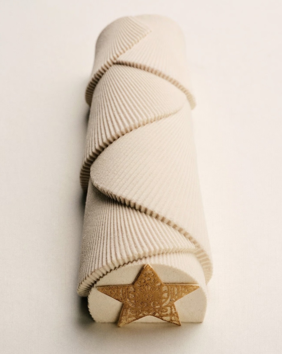 Maxime Frédéric signe une bûche exclusive pour Louis Vuitton où la douceur de la noisette rencontre la vivacité du citron. Sous un décor festif délicat, la création révèle une onctuosité profonde, équilibrée par l’éclat acidulé de l’agrume. Une alliance subtile et audacieuse qui reflète l’élégance des fêtes.