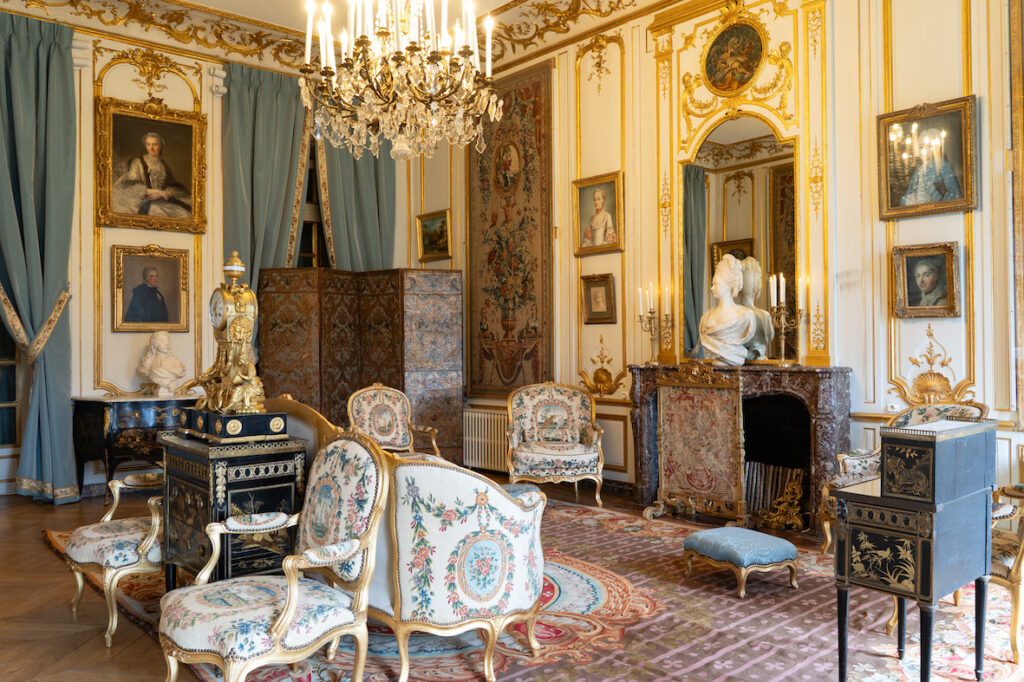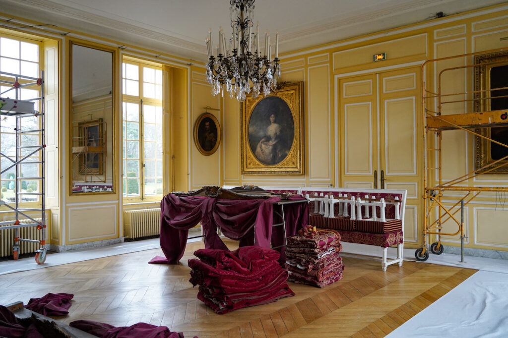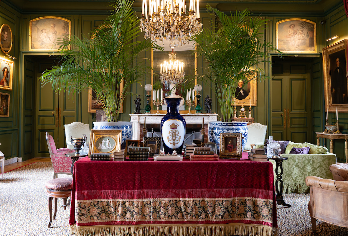 Enfin, le Salon Empire déploie une esthétique plus éclectique. Couleurs profondes, richesse des matières et dialogue des œuvres recréent l’atmosphère du XIXe siècle, époque où le château accueillait des personnalités telles qu’Edward VII, Marcel Proust ou la reine du Portugal.