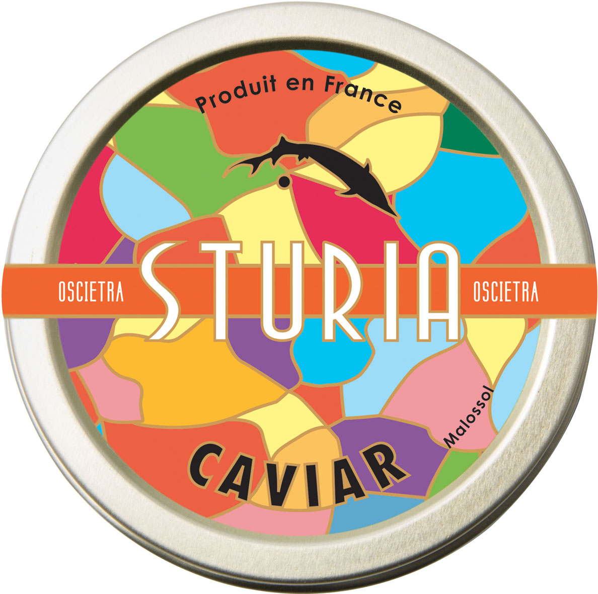 Sturia Caviar Oscietra. A la dégustation, ce caviar sensuel et raffiné, développe des saveurs marines et des notes de fruits secs. Très prisé des connaisseurs, ses grains fermes aux teintes mordorées roulent parfaitement sous le palais, libérant progressivement leur arôme délicat. Boîte 100 g, 280 € (www.sturia.com).
