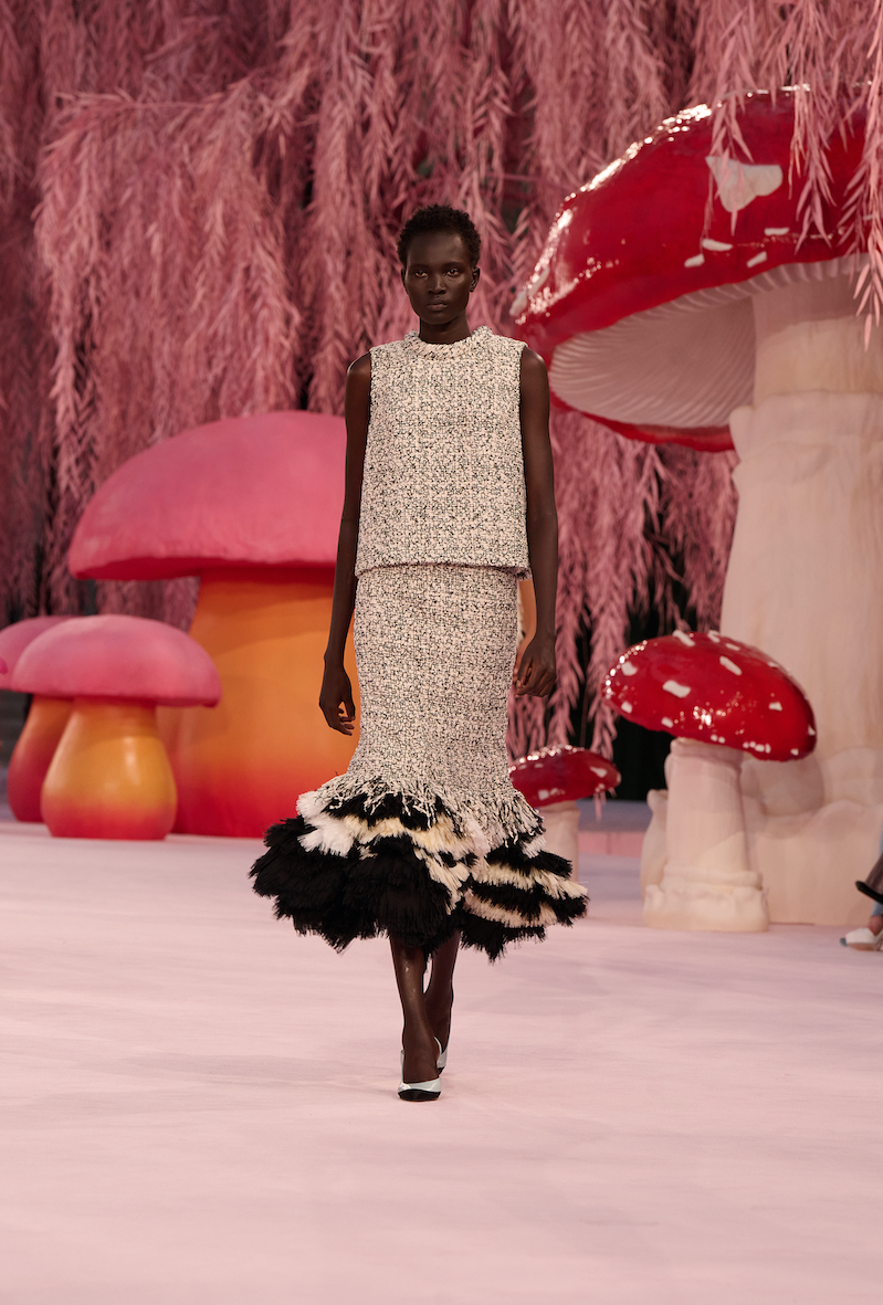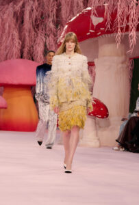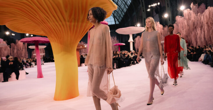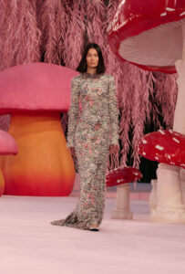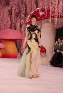 Autour de champignons monumentaux, dans une forêt stylisée, les silhouettes se rassemblent un instant. Le décor, volontairement irréel, suspend le temps. Puis vient l’envol. La collection s’achève comme elle a commencé : dans un souffle, dans un geste retenu. Entre rigueur et poésie, réalité et imaginaire, la Haute Couture ouvre ici une parenthèse fragile. Un instant de beauté pure.