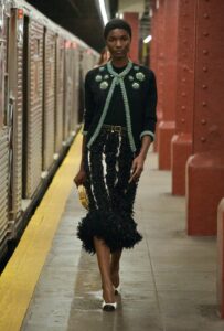 Le métro de New York, choisi par Matthieu Blazy pour présenter sa première collection Métiers d’art Chanel, devient le théâtre d’une mode vivante, pop et en perpétuelle métamorphose. Un lieu où toutes les silhouettes se croisent, comme les héroïnes d’un film en mouvement constant.
