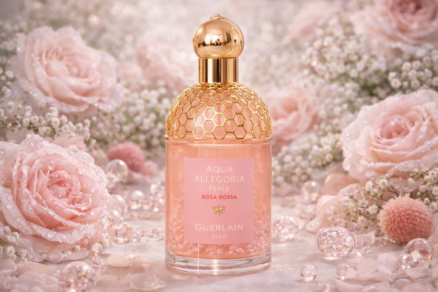 Pensé à mi-chemin entre parfum et soin, Aqua Allegoria Perle Rosa Rossa capture la fraîcheur d’un bouquet de fleurs multicolores dans une formule innovante micro-perlée, à base d’eau. Une technologie pionnière chez Guerlain, qui combine l’intensité de micro-perles de parfum hautement concentrées aux effets hydratants d’une base aqueuse formulée sans alcool.