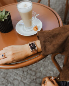 Le raffinement se poursuit dans le choix des matériaux et des finitions. Le cadran noir révèle toute la profondeur de l’onyx grâce à l’écran AMOLED haute définition, tandis que le boîtier galbé en acier inoxydable se décline en silver, doré ou rose gold. Les bracelets, en cuir italien texturé croco ou en maillons d’acier, sont interchangeables et ajustables grâce au système EasyStrap, offrant autant de variations qu’il y a d’occasions de porter la montre : au bureau, en rendez-vous ou en soirée.