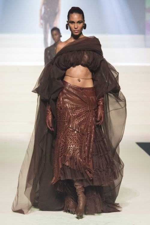 C’est sur la scène du théâtre du Chatelet de Paris que Jean-Paul Gaultier a présenté sa collection haute couture printemps-été 2020, clôturant ses 50 ans de carrière. Pour son dernier défilé, le célèbre créateur avait souhaité être entouré de ses muses et fidèles amis, comme Boy George, Mylène Farmer, Estelle Lefébure, Catherine Ringer, Amanda Lear, Bella Hadid, Iris Mittenaere, Christina Cordula… qui ont participé avec deux cent mannequins à ce show de fin exceptionnel, époustouflant et très joyeux !