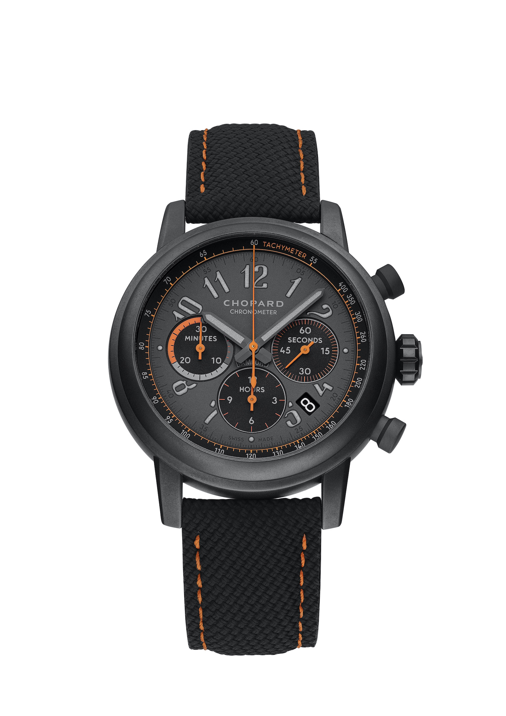 Les quelques 33 exemplaires numérotés du modèle «Mille Miglia Bamford Edition» affichent fièrement une allure sportive et très contemporaine grâce à un boîtier de 42 millimètres en acier inoxydable Diamond Like Carbon (DLC) microbillé, un élégant bracelet, un cadran gris foncé et des marquages orange d’une grande lisibilité. Animée par un mouvement chronographe de précision certifié «Chronomètre» par le COSC, cette création horlogère reflète la passion qui unit Chopard à la plus belle course automobile du monde. C’est dans le célèbre showroom de voitures anciennes Fiskens à South Kensington, que Karl-Friedrich Scheufele, coprésident de la Maison Chopard et George Bamford, fondateur du Département Montres de Bamford, ont révélé la «Mille Miglia Bamford Edition» (www.chopard.fr)
