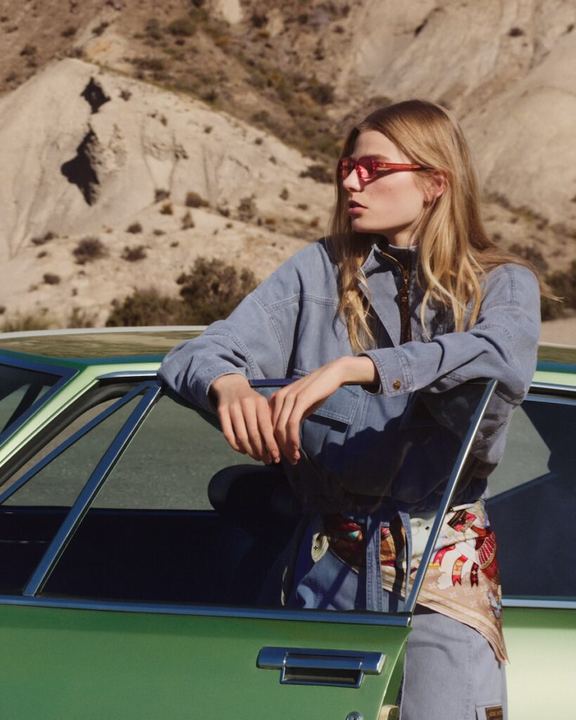 Indémodable, le denim joue les contrastes. Dans une nuance bleu-gris délavé et dans la nouvelle variation du Monogram Louis Vuitton Denim Marron, pantalons et blousons amples, ainsi que robes ceinturées sans manches à larges poches cargo, composent une silhouette décontractée.