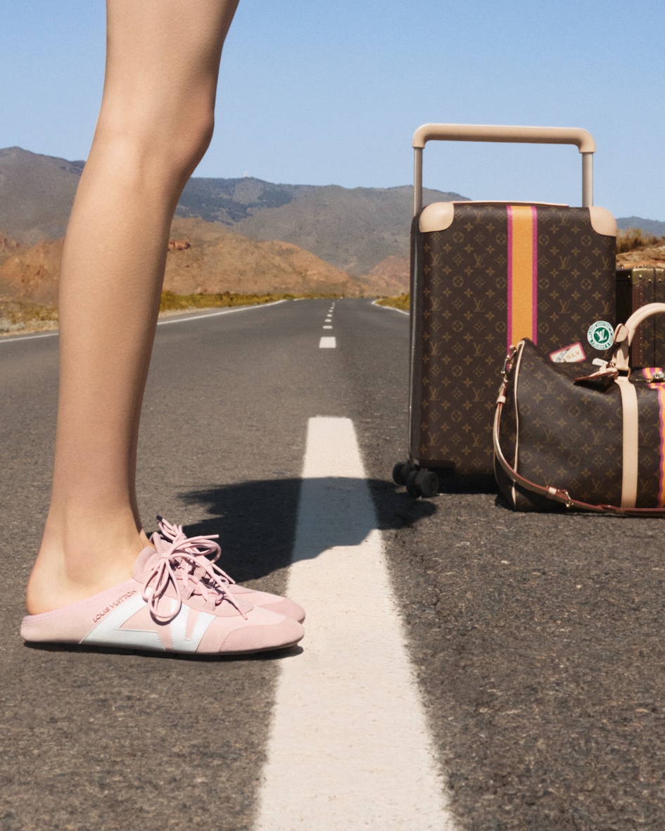 Autre pièce phare de la collection, la LV Sneakerina célèbre son premier anniversaire avec une allure toujours plus dynamique. Déclinée en mules et en boots, elle conjugue agilité et liberté de mouvement dans un esprit sportswear urbain. Réalisée en cuir, en suède ou en jersey, en versions bicolores ou monochromes, chaque paire s’inscrit dans une élégance fonctionnelle pensée pour accompagner le quotidien et sublimer l’ensemble des silhouettes (www.louisvuitton.com)