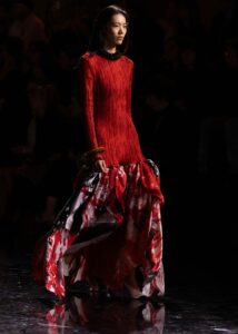 Le créateur franco-belge de 41 ans a offert une vision à la fois respectueuse de l’héritage de Gabrielle Chanel et furieusement contemporaine. Des tailleurs-pantalons revisités aux vestes raccourcies, des chemises fluides à la coupe masculine aux jupes fendues sur le côté, Matthieu Blazy réinvente les codes de la Maison avec audace. Les classiques se déconstruisent dans un jeu subtil de contrastes : tweeds effilochés, mailles colorées parsemées de camélias, tailles basses assumées.