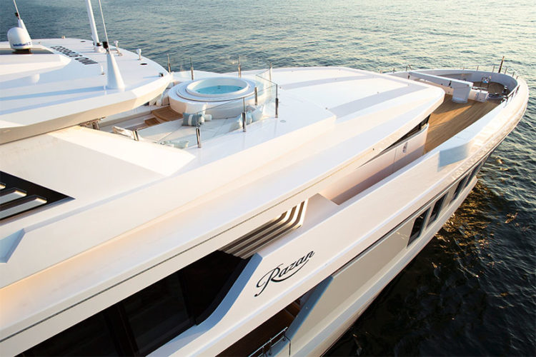 Le Razan, un NB 60 de Turquoise Yachts, est une superbe unité de 47 mètres de long au design élégant et moderne à la fois. Tout est réuni pour créer un vaste espace multi fonctionnel en bénéficiant de tout le luxe d’un navire de taille supérieure.
